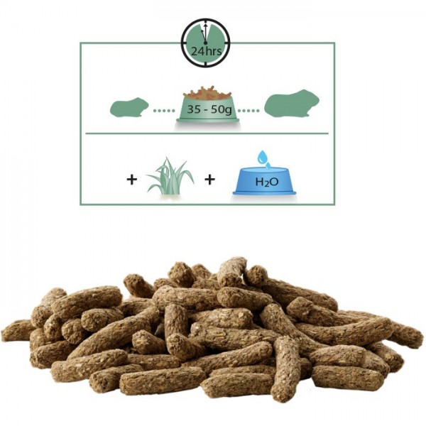 - уход за зубами: уникальный метод производства корма позволяет включить в состав длинные богатые кремнием природные волокна, это важно для правильной сточки зубов у морских свинок. фитолитов, а также других полезных трав, которые могут найти в дикой природе